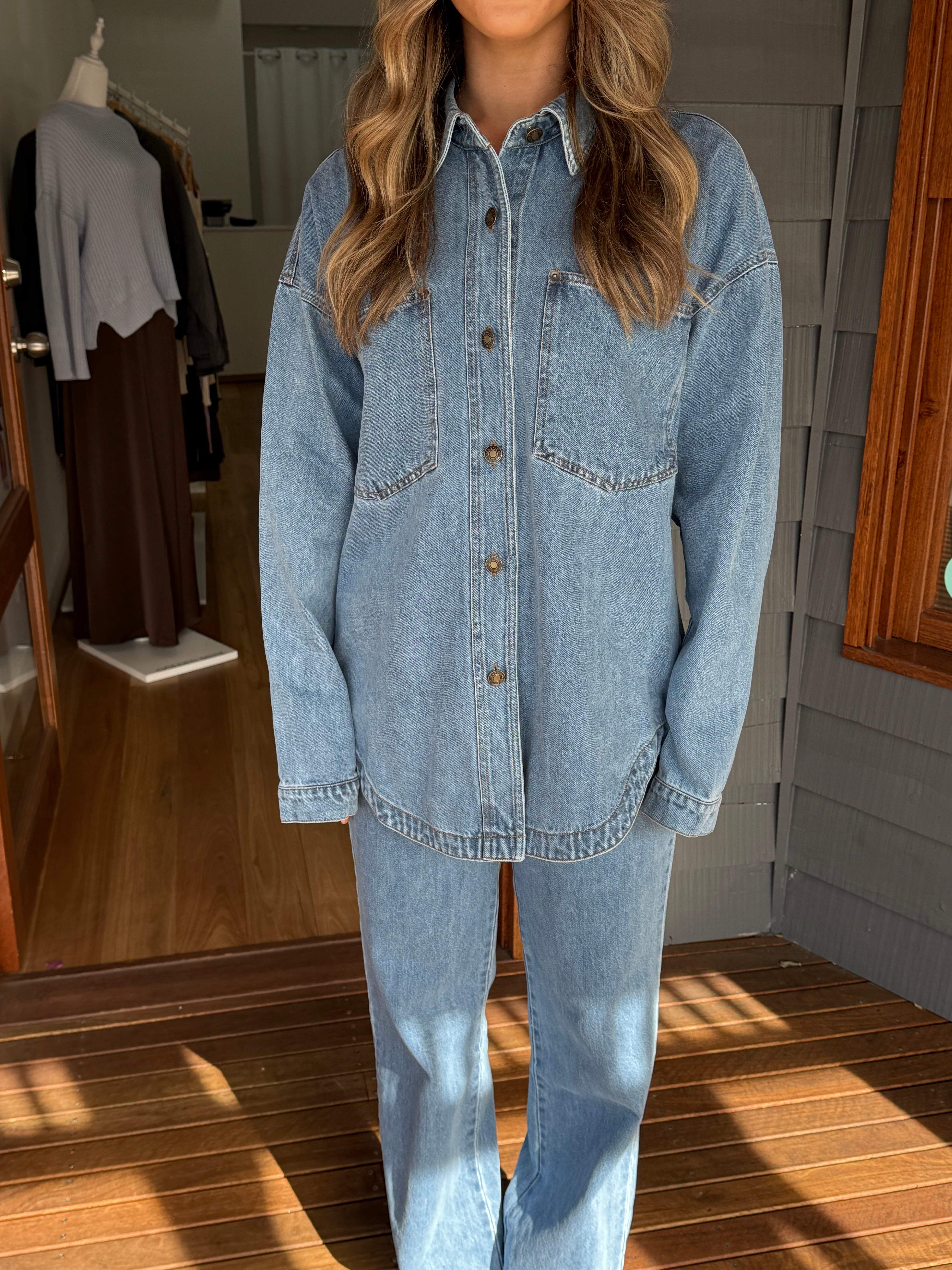 Meet the Macey Shacket. A timeless layer with a relaxed feel, featuring a button-up front and functional pockets. The curved hemline gives it that flattering, easy shape. Throw it over your look or wear it solo — it’s the kind of piece you’ll reach for again and again.