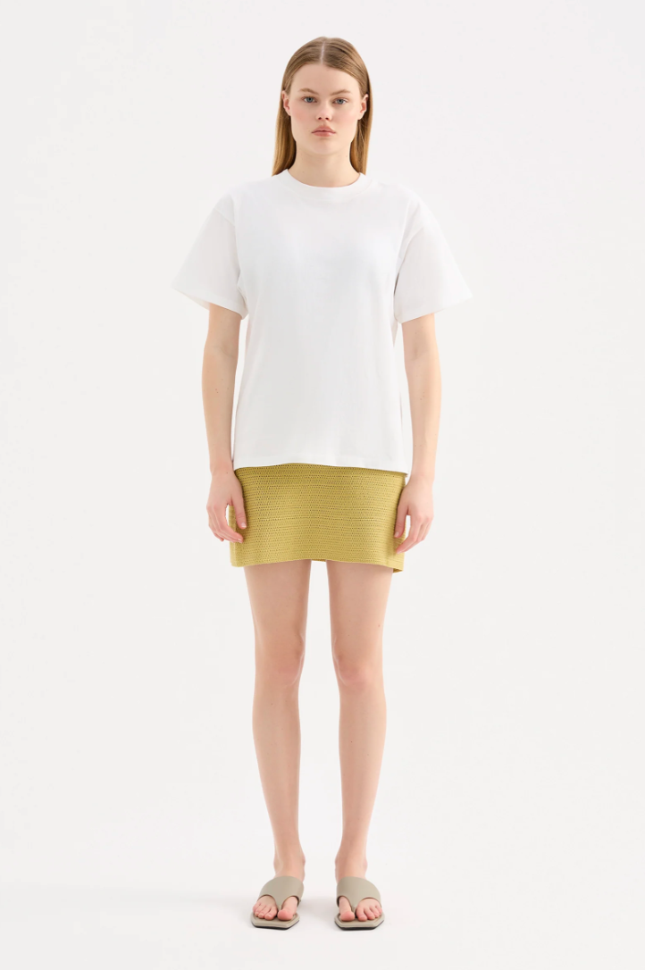 The Marlo Knit Skirt is made from a viscose blend yarn, with a cool, dry hand feel. The silhouette is mid rise and mini in length. Features include an elasticated ribbed waistband and a tight knit construction to ensure the garment isn't see through.
