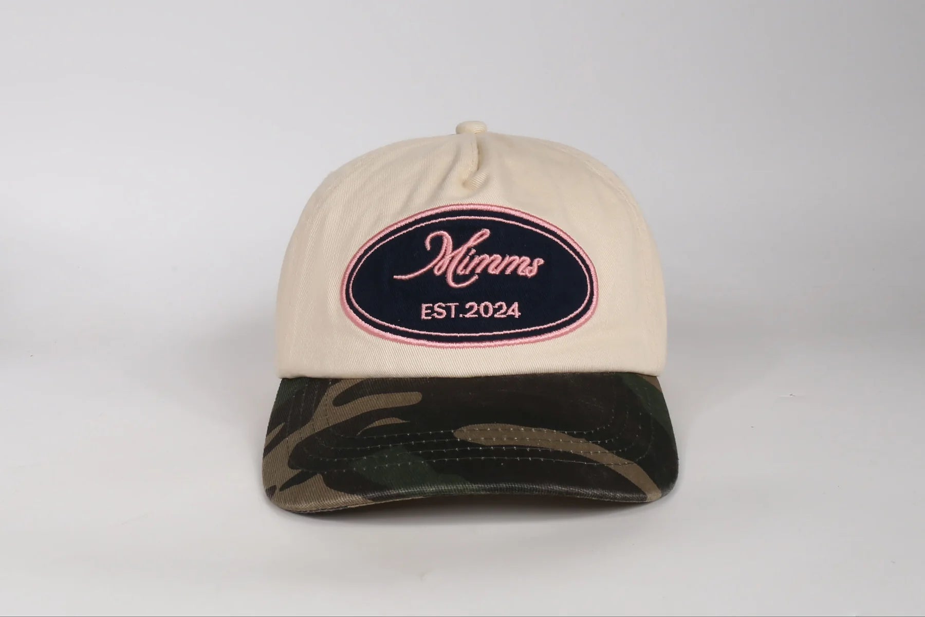 Blend into the wild with the Mimms Camo Patch Cap, a perfect fusion of rugged style and outdoor-ready functionality. This cap features a soft beige crown, contrasted by a camouflage-print bill that adds a tactical edge to your look. The front is adorned with a bold embroidered patch, showcasing the Mimms logo and “EST. 2024” in striking navy and red tones, giving it a vintage yet timeless appeal. Whether you’re exploring the outdoors or adding a rugged accent to your casual wear, this cap is designed for comfort with its adjustable snapback closure, ensuring a perfect fit for any adventure.