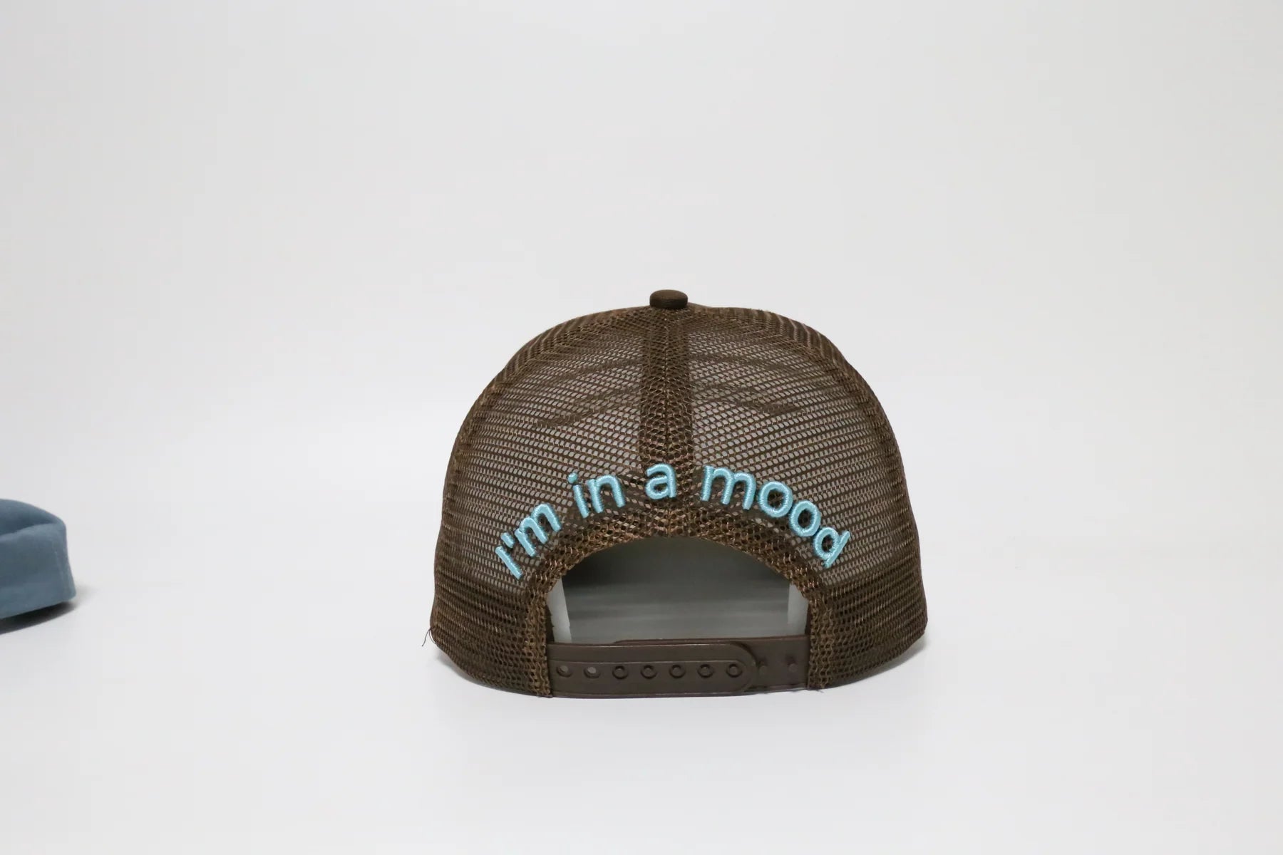 Elevate your casual look with the Mimms Trucker Hat, a perfect blend of style and comfort. Featuring a classic brown mesh back, this hat is designed for breathability and all-day wear. The front showcases the elegant Mimms logo embroidered in soft teal, giving it a subtle pop of color. The back of the hat adds a touch of personality with the phrase “I’m in a mood” also embroidered in teal, making it a unique statement piece. Whether you’re out on an adventure or just enjoying a day outdoors, this hat is your go-to accessory for a laid-back yet stylish vibe.