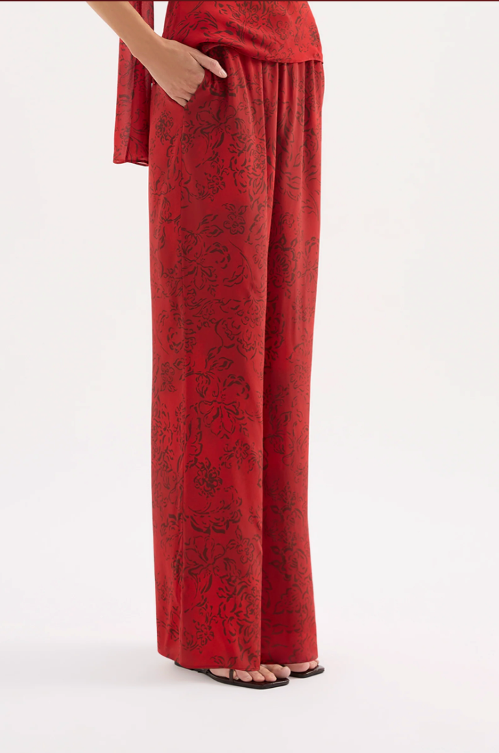 The Saffron Pant is made from a fluid silk blend fabrication and features bespoke and exclusive Saffron print. The silhouette is a relaxed wide leg, full length pant. Features include an elasticated waistband and side seam pockets.