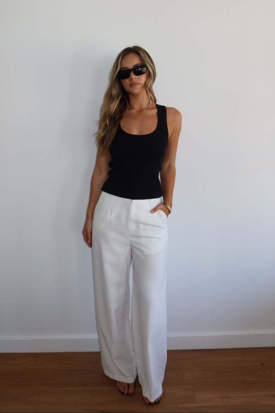 The Sal Pant – Effortless, modern pants you’ll reach for again and again. They feature a tailored waist with a low to mid-rise cut, belt loops, and functional pockets for everyday practicality. The wide-leg silhouette keeps them relaxed and flattering, while a clasp and zipper closure ensures a clean, polished finish.