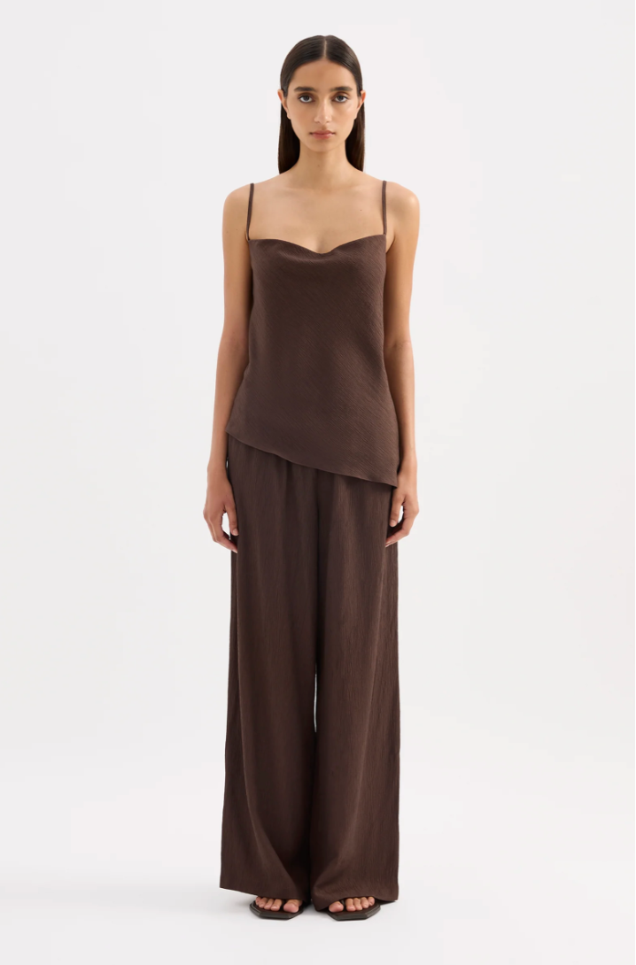 The Winfield Pant is made from a crinkle textured fabric which has a dry, lightweight hand feel. The silhouette is relaxed with a wide full length leg. Features include an elasticated waistband and side seam pockets.